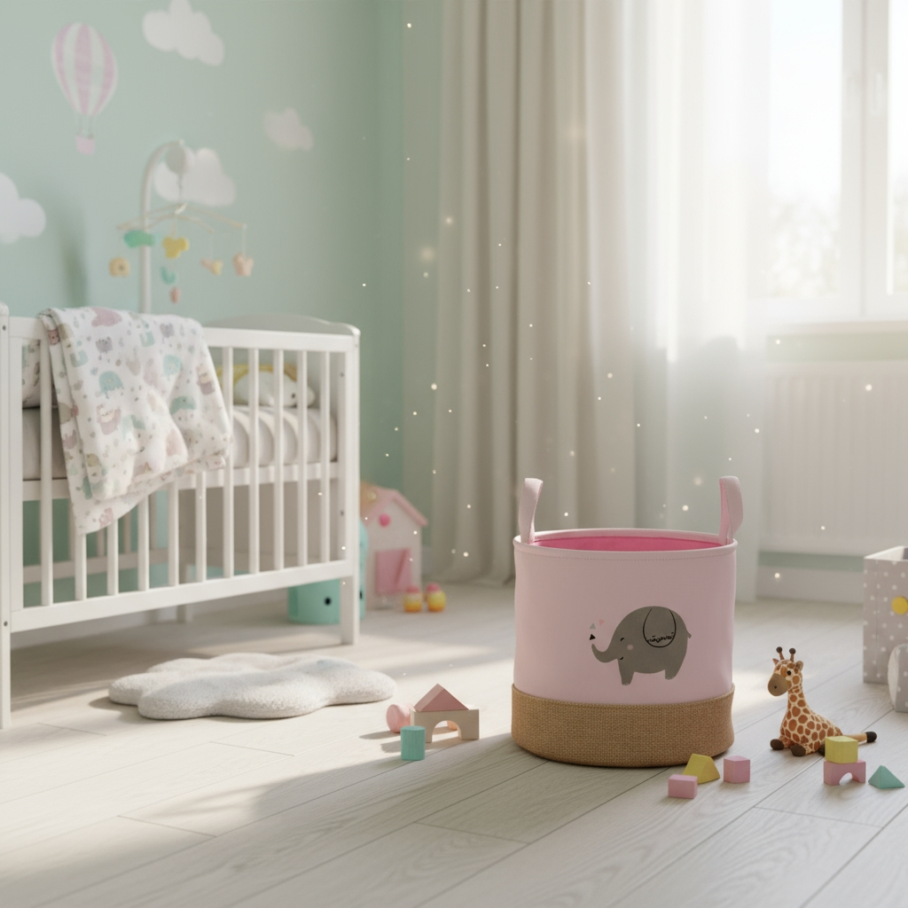 Καλάθι με λαβές διαστάσεων 35Χ35Χ40 εκατοστών κατασκευασμένο από ύφασμα σε ροζ χρώμα.